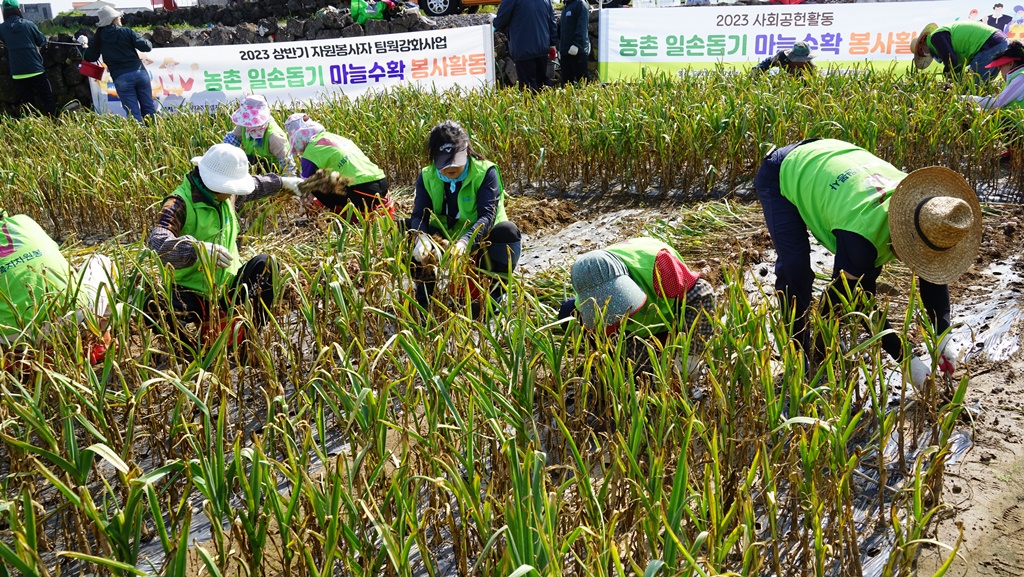 구좌읍 월정리 마늘밭 농가를 방문하여 마늘수확 봉사활동을 실시했습니다. 😍