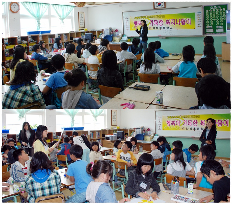 (사진은 화북초등학교 6학년 꿈초롱반 학생을 대상으로 5. 13일 시행된 복지교육 장면)