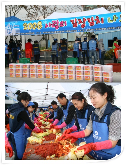 자원봉사자들과 신한금융그룹 직원들의 참여로 '2008 이웃돕기 사랑의 김장김치 나누기' 행사를