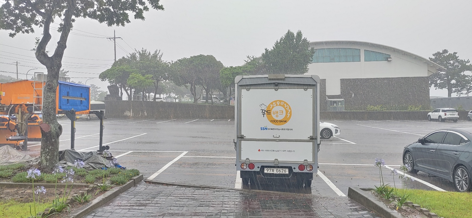 궂은 날씨에 물품들을 싣고, 이른 아침에 온 보람과 감사함으로 오시는 한 분 한 분 맞이하며 잘 마치고 무사히 복귀하였습니다.