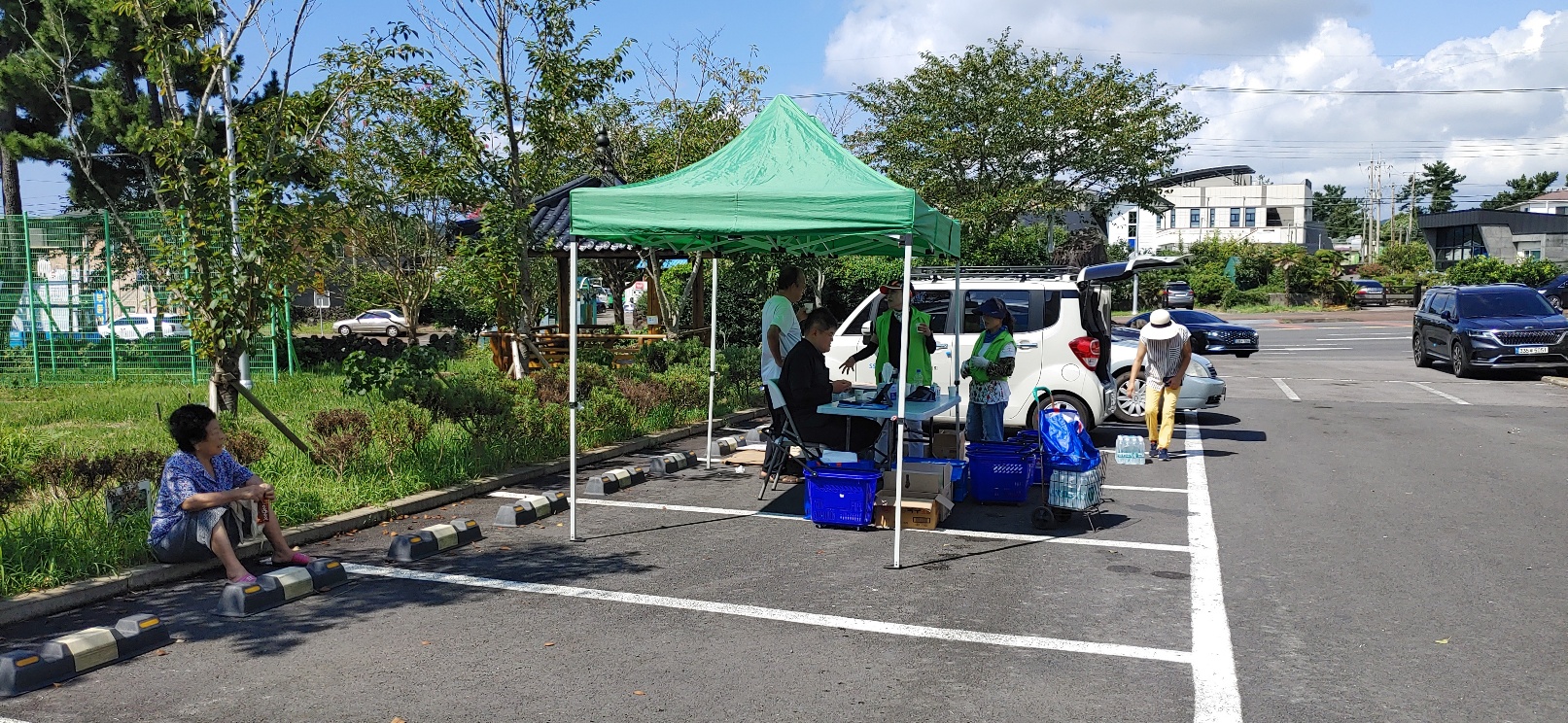 쉼터에서 먼저 쉬시고 물품을 고르고 가셨습니다. - 표선면이 이렇게 더운 줄 처음 알았습니다.