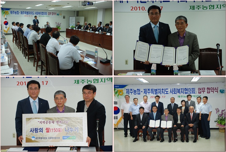 지난 9. 17(금) 10:00 제주특별자치도사회복지협의회(회장 이동한)와 제주농협지역본부(본부장 김상오)는 협의회에서 추진중인