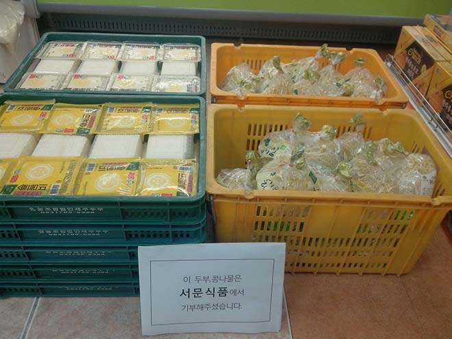 서문식품에서 매주 화, 목요일에 두부를 기탁해주시고 계십니다