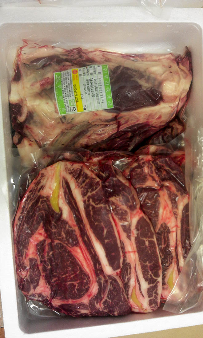 이번 추석에 우리 이웃들이 고깃국이라도 끓여드시라고 한우세트와 흑돼지 선물세트를 기탁해주셨어요.