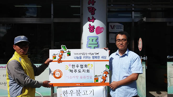 지난 10.5(토) 나눔대축제때 한우기탁을 약속하셨었던 한우협회 제주도지회에서 천만원 상당의 소불고기를 기탁해주셨습니다.