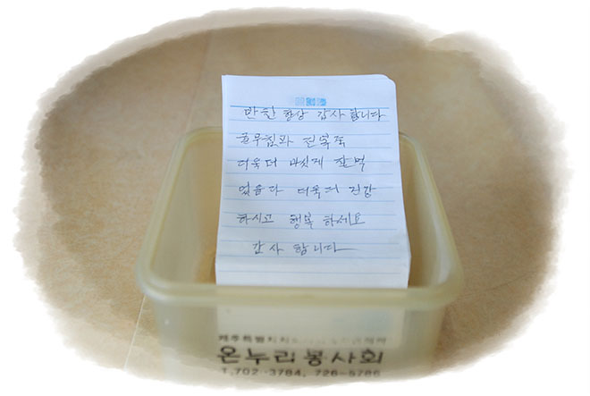 이 따뜻한 편지 한통으로 봉사자분들은 더욱더 힘이납니다.