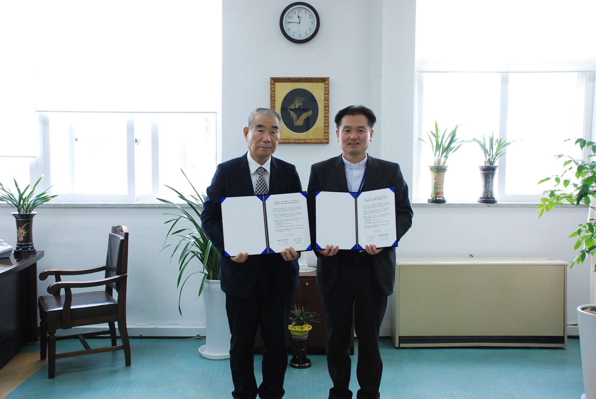 제주특별자치도 사회복지협의회(회장 고치환)와 신성여자고등학교(교장 송동림)는 학교폭력 근절 및 안전한 교육환경을 조성하기 위한 학교폭력 예방 활동 네트워크 협약을 23일 오전 신성여자고등학교에서 체결했습니다.
