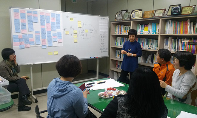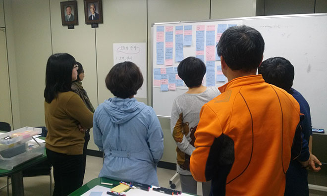 사회복지인권사랑방에서는 2016. 3.25(금) 14:00~17:00까지 사회복지종사자'인권'워크숍개최를 위한 사전기획워크숍이 진행되었습니다. 퍼실리테이션기법을 활용한 기획워크숍으로 사회복지종사자'인권'워크숍의 주제를 정하고, 워크숍이 안전하고 솔직한 이야기의 장을 마련하기 위한 방안등이 논의되었습니다.