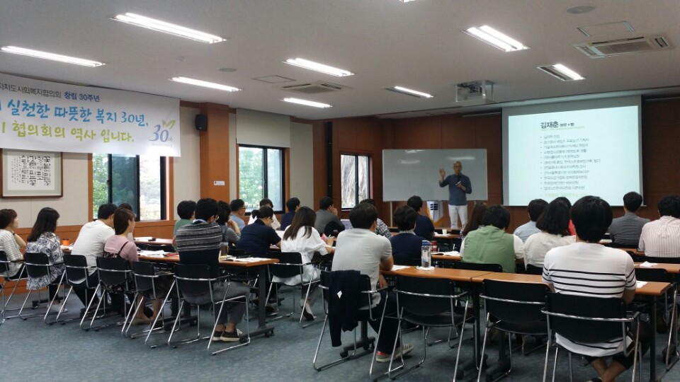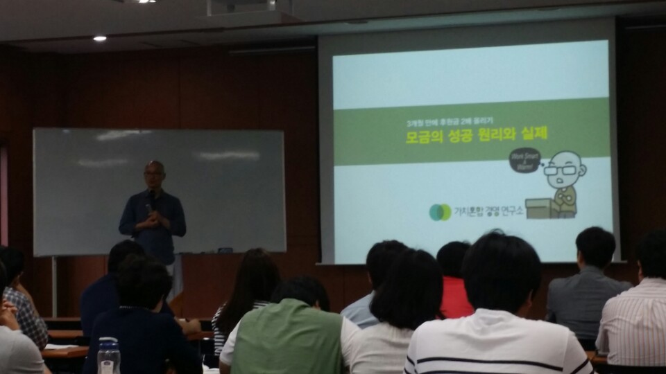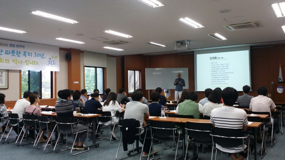 2016. 06. 09 사회복지 시설, 단체의 후원, 모금 실무자 대상으로 김재춘 가치혼합경영연구소장의 강의로 사회복지자원개발과정 두번째, 모금전략에 대한 교육이 실시되었습니다.
