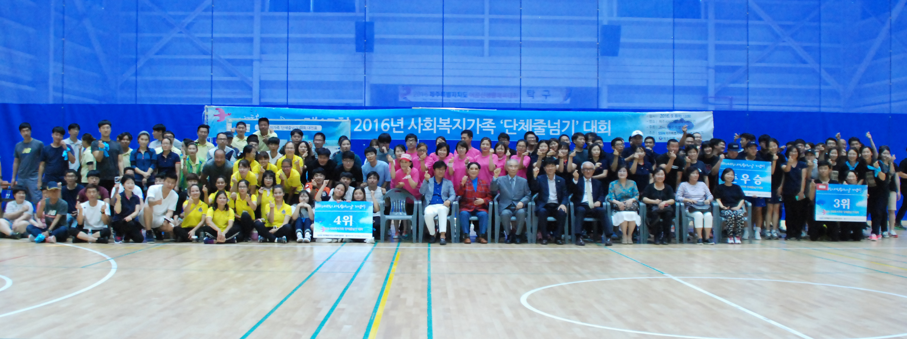 사회복지의 날을 기념해 열린 '사회복지인 단체줄넘기 대회'가 지난 8일 제주시 사라봉다목적체육관에서 열렸습니다.