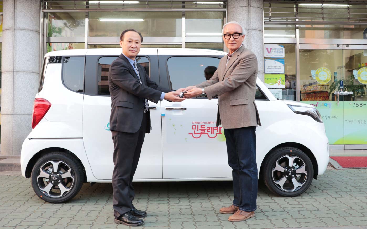 방문하시고 취약계층을 돕는 일에 사용하라며 흰색의 레이 민들레카를 지원해 주셨습니다.