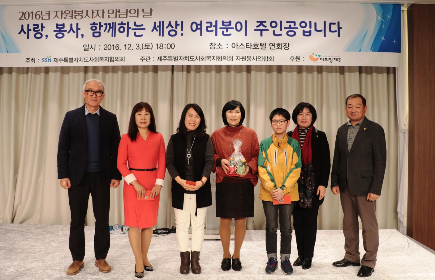 행사는 더희망 제주의 축하공연, 인사말씀, 자원봉사자활동 사례발표, 올해의베스트봉사자 선정, 2016 자원봉사활동소개, 만찬, 기념사진 촬영 순으로 이뤄졌습니다.