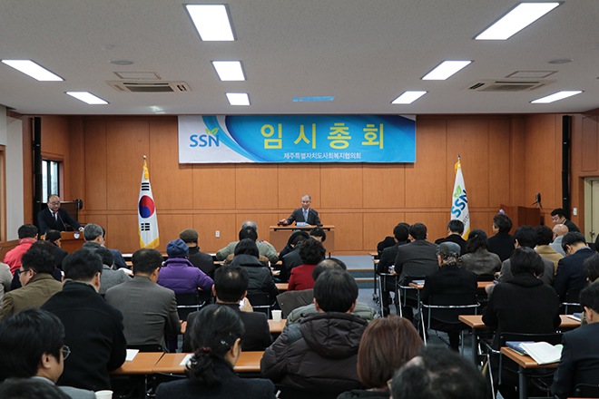 제주사회복지협의회 2016년도 제2차 임시총회가 12월 27일 오후 2시, 협의회 회관 삼다수홀에서 개최되었습니다. 이 날 총회에서는 정관 개정안과 제7대 임원 인준안이 상정되어 원안 가결처리되었습니다.