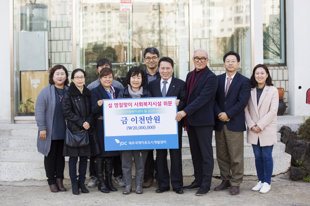 제주국제자유도시개발센터(JDC, 이사장 이광희)에서는 지난 25일 설 명절을 이틀 앞두고 도내 아동 및 청소년 등 사회복지시설 20개소에 2,000만원 상당의 전통시장 상품권을 전달해 주셨습니다.