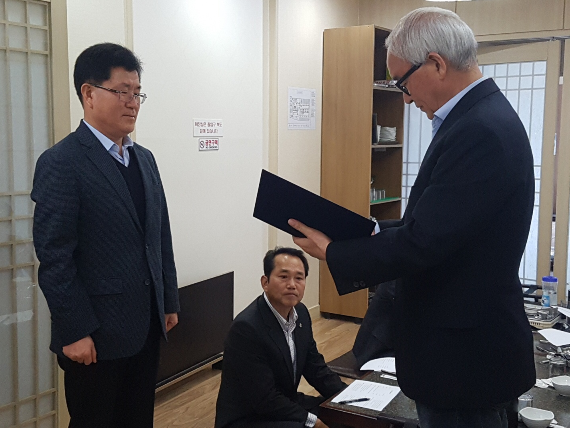 이날 회의에서는 새로 오신 김정주 도 복지청소년과장님께 위촉장전달(사진하단)을 비롯해 2차 회의 결과에 대한 조치사항, 도지사 간담회 결과, 2017년 주요사업 등 보고사항과, 실무자 운영위원회 우수 사업장 견학 등 논의사항으로 진행되었습니다.