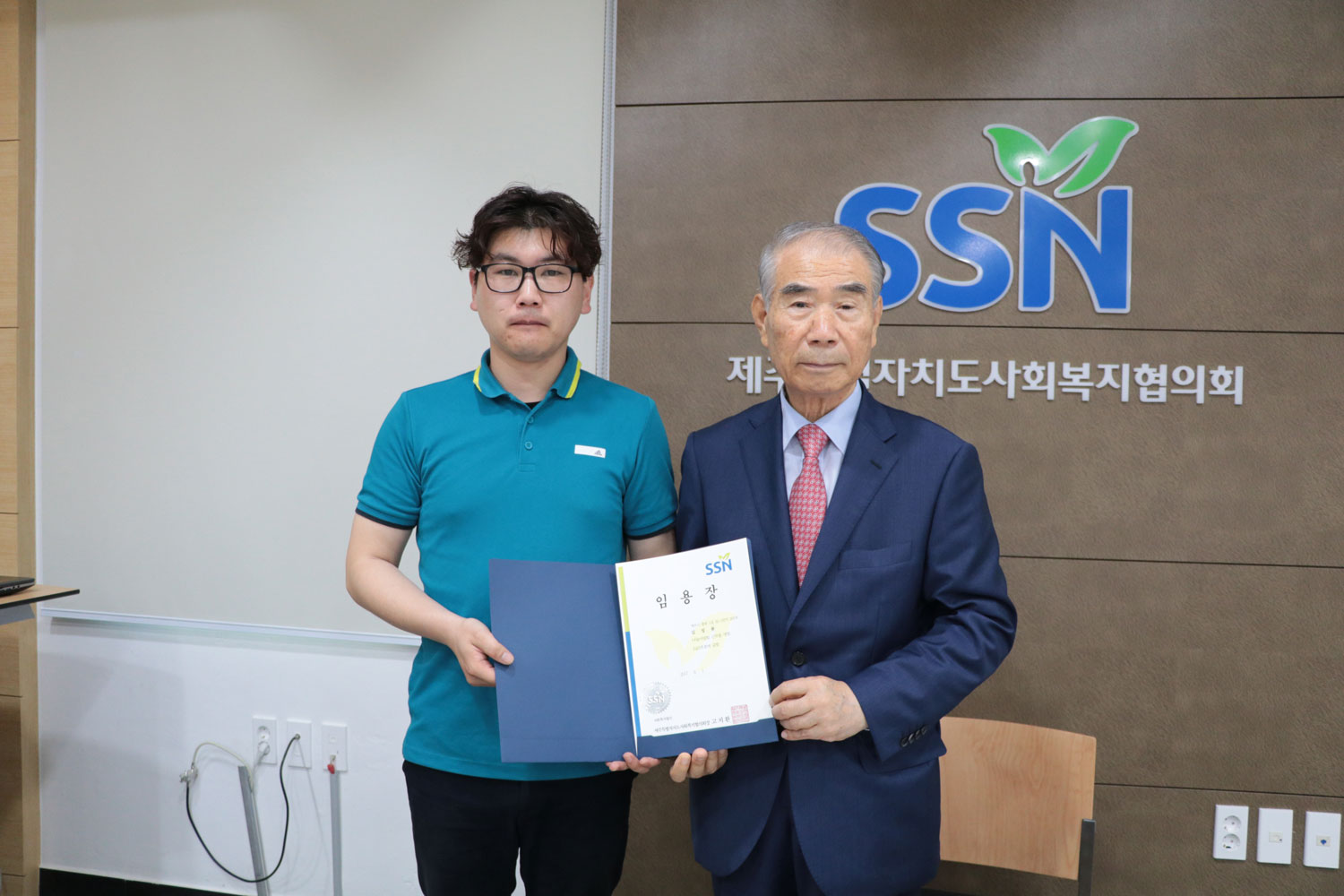 이번 법인 직원회의에 앞서, 푸드마켓을 담당하는 김성용 선생님에 대한 임명장 수여식이 진행됐습니다.