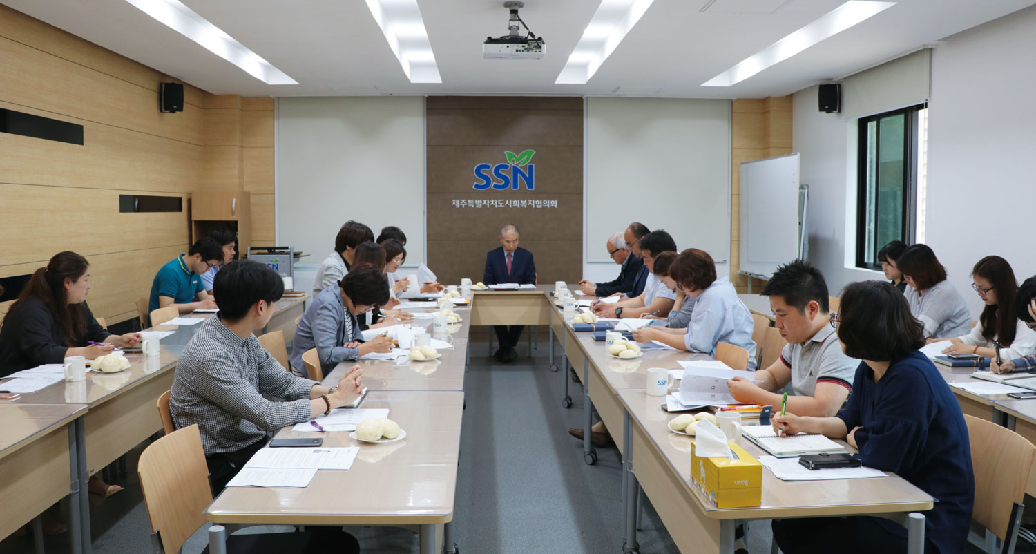 법인 직원회의는 아라종합사회복지관, 아라어린이집, 제주도사회복지협의회 순으로 4~5월 주요 업무 추진실적과 6월 추진계획에 대해 발표하고 회장님 이하 모든 법인 직원들이 업무에 대해 공유하는 시간을 가졌습니다.