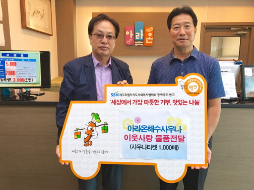지난 8. 4(금) 아라온해수사우나(대표 장승남)에서 제주광역푸드뱅크에