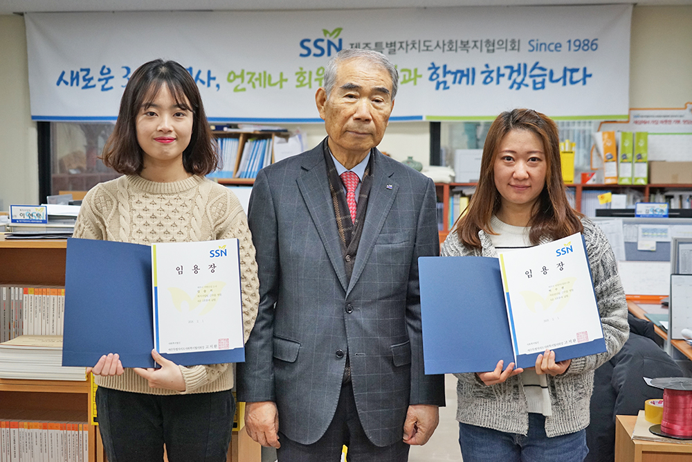 허수진 선생님은 자원관리팀에서 코디네이터 업무를, 김승지 선생님은 복지사업팀에서 홍보 및 사회복지신문 업무를 맡고 있습니다.^^