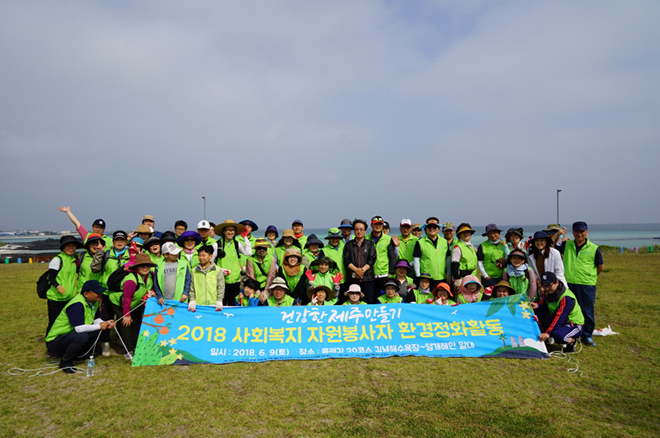 지난 9일(토) 제주 올레길 20코스 김녕해수욕장 일대에서 2018 사회복지 자원봉사자 팀웍강화사업 ‘건강한 제주 만들기 환경정화 활동’을 실시했습니다.