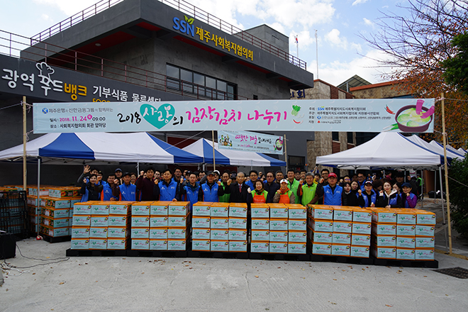 오늘(24일) 협의회 앞마당에서 신한금융그룹과 함께하는 ‘2018 사랑의 김장김치 나누기’ 행사를 진행했습니다.