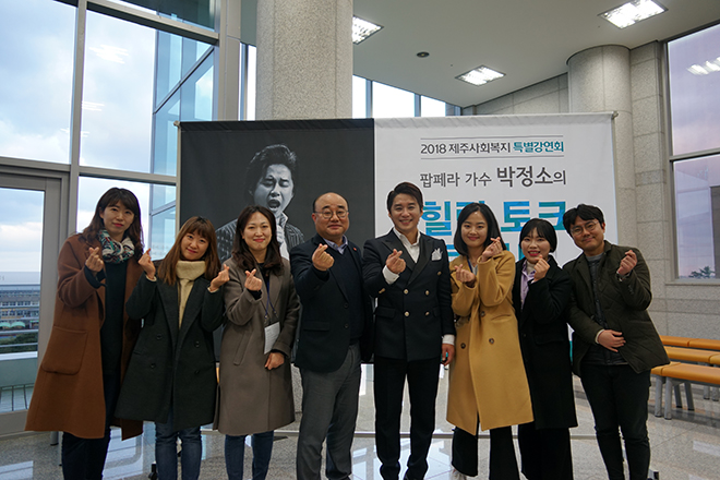 오늘(12일) 설문대여성문화센터에서 우리 협의회와 제주사회복지연구센터가 함께 개최한 '2018년 사회복지 특별강연회 - 팝페라 가수 박정소의 힐링 토크 콘서트'가 열렸습니다.
