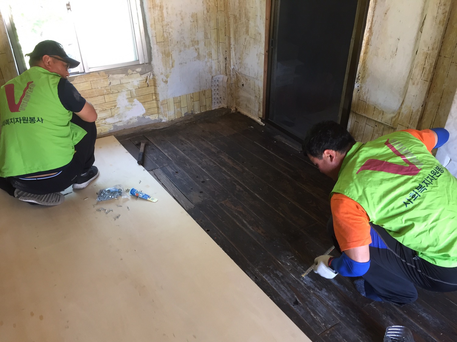 우리 협의회 소속 자원봉사연합회에서는 지난 5. 25(토)과 6. 9(일) 안덕면에 거주하고 있는 저소득가정 4가구를 대상으로 주거환경개선(도배 및 장판 교체, 화장실 문설치 및 단열공사, 싱크대 교체 등)실시하였습니다.