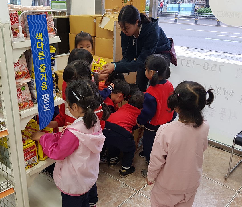 진열도 해보고 직접 체험해 보며 나누는 즐거움을 배웠습니다.