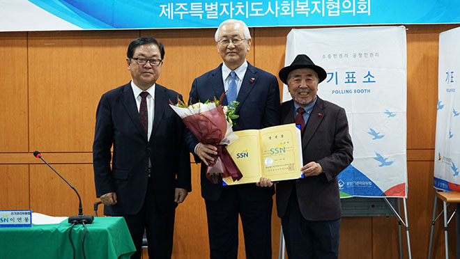 6일 열린 ‘2019년도 제2차 임시총회’에서 제주특별자치도사회복지협의회 제8대 회장으로 고승화 후보가 당선되었습니다.