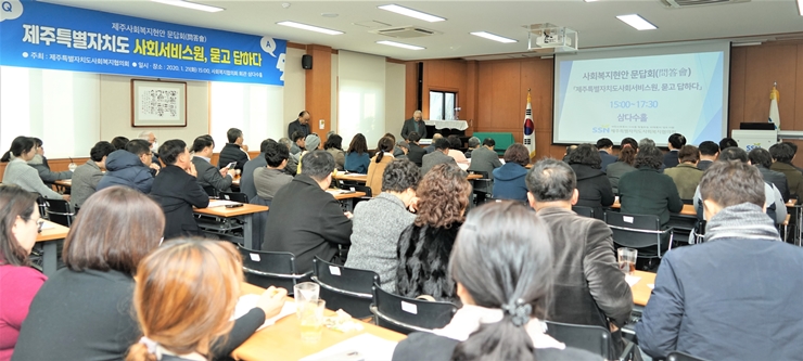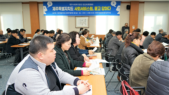 문답회는 제주특별자치도 사회서비스원 설립관련 용역결과보고와 함께 열띤 질의‧응답시간으로 마련됐습니다.