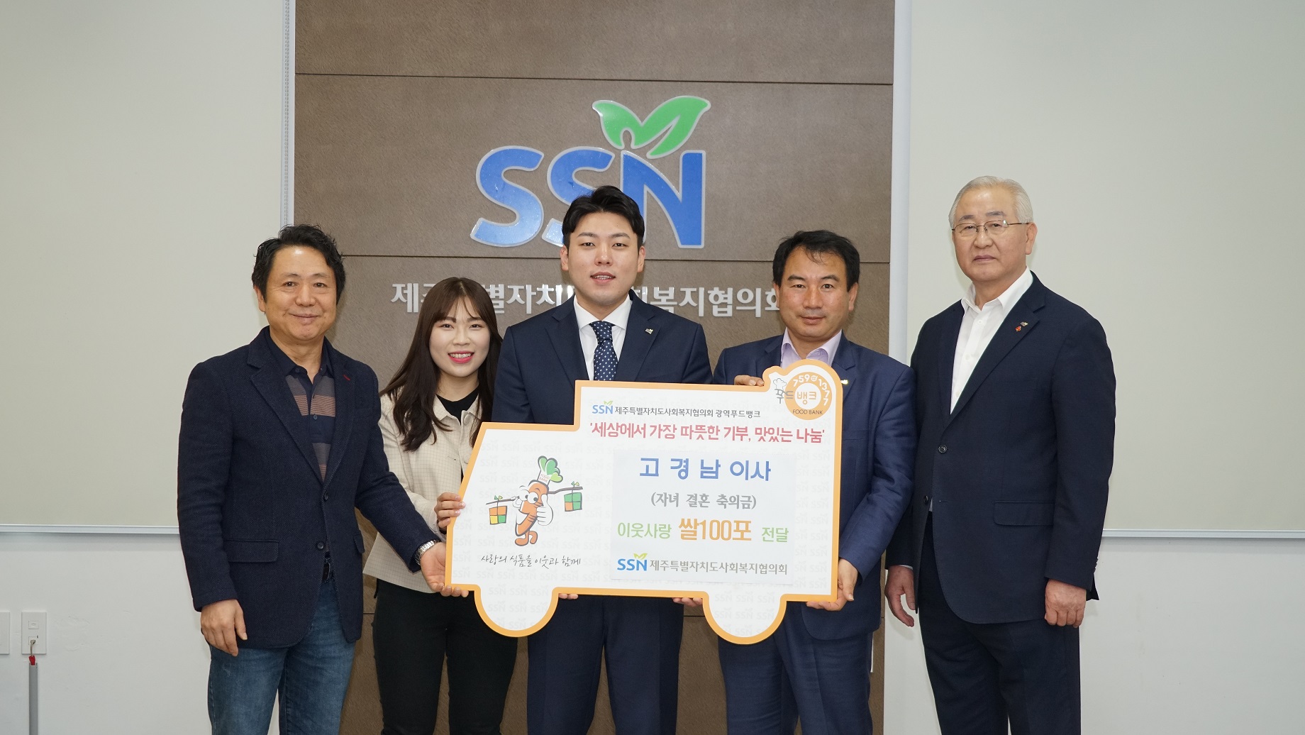 우리 협의회 임원이신 고경남 이사님께서 지난 4. 11일 있었던 장녀결혼식 잔치(피로연) 축의금을 뜻깊게 사용하고자 이웃 사랑 쌀(10kg) 100포대를 구입하여 제주특별자치도푸드뱅크 및 화북동주민센터에 전달하였습니다. 고경남 이사님과 가족분들의 앞날에 항상 건강과 행복이 가득하시길 기원합니다.