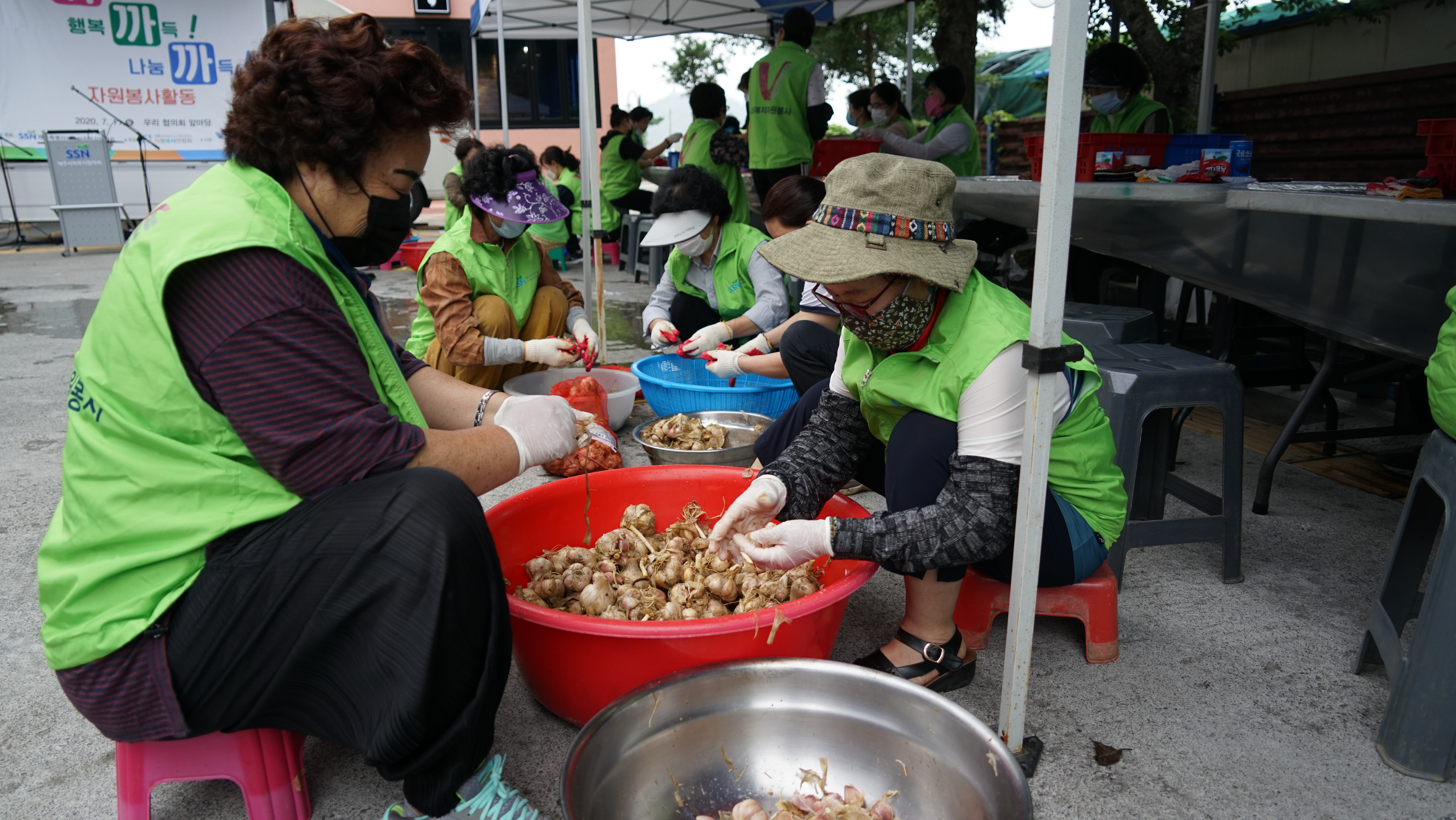 지난 7. 11(토) 우리 협의회 소속 자원봉사연합회(회장 이백만)에서는 자원봉사자 팀웍강화사업으로 "사회복지시설 지원을 위한 마늘손질하기" 자원봉사활동을 실시하였습니다. 참여해주신 모든 자원봉사자님들에게 진심으로 감사드립니다. 손질된 마늘은 도내 사회복지시설에 소중히 전달하겠습니다.