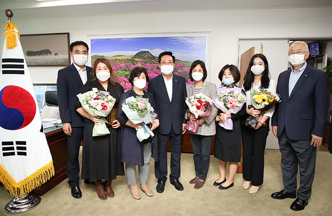 오늘(15일) 제주도의회 의장실에서 ‘제21회 사회복지의 날’사회복지유공자 5명에 대한 제주특별자치도의회의장 표창 시상식이 개최되었습니다.