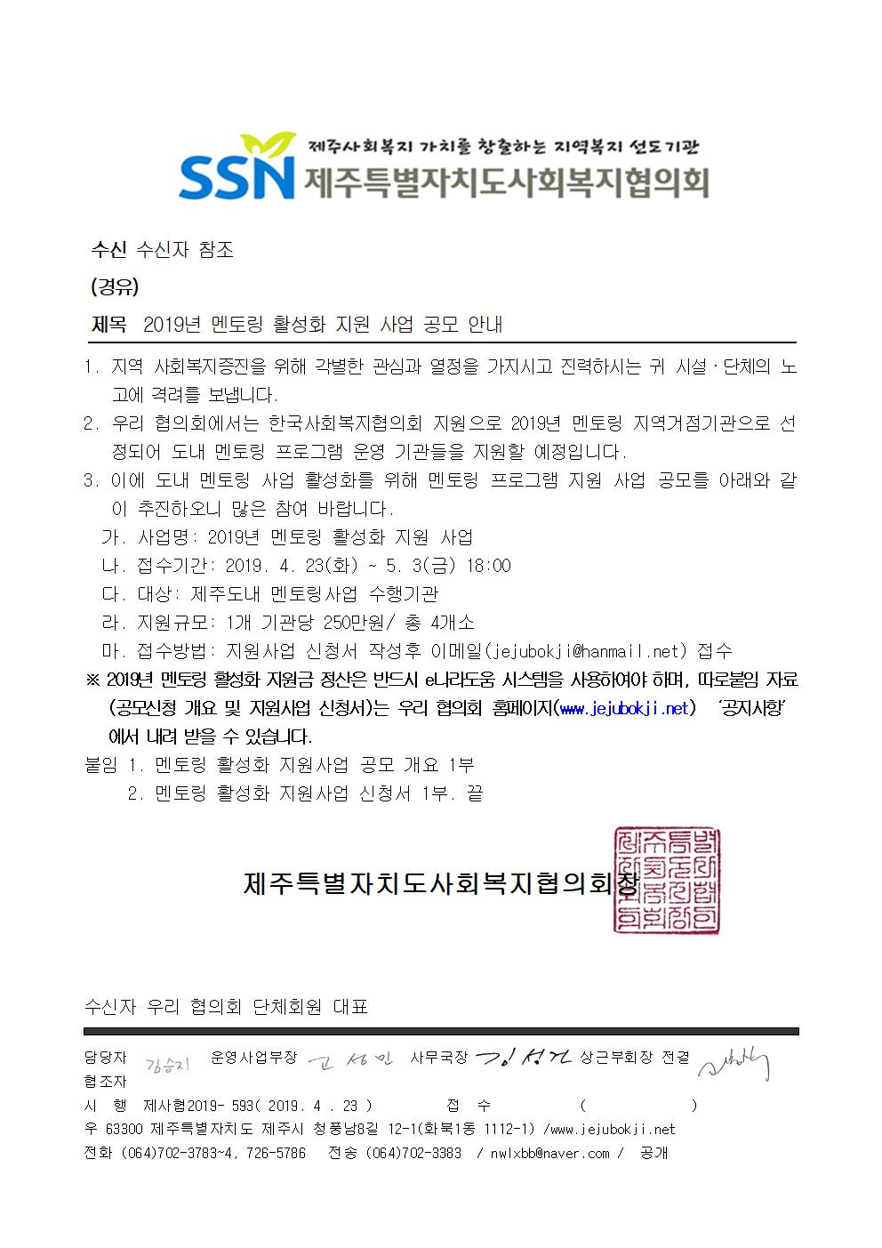 2019 멘토링 활성화 지원 사업 공모 안내