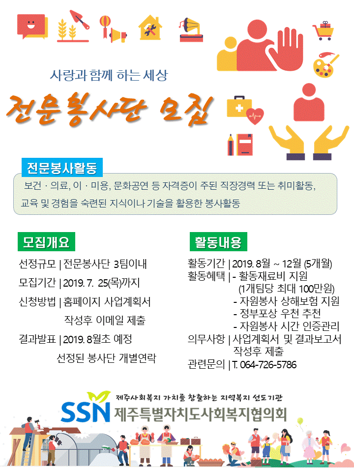 전문재능*을 활용한 봉사활동이 가능한 단체·동아리의 적극적인 참여 바랍니다.