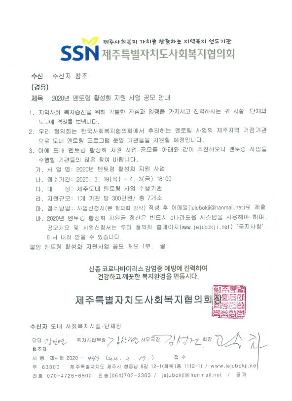 2020년 멘토링 활성화 지원사업 공모 안내