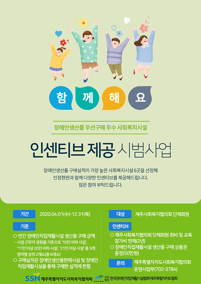 「장애인생산품 우선구매 우수 사회복지시설 인센티브제공 시범사업」시행 안내