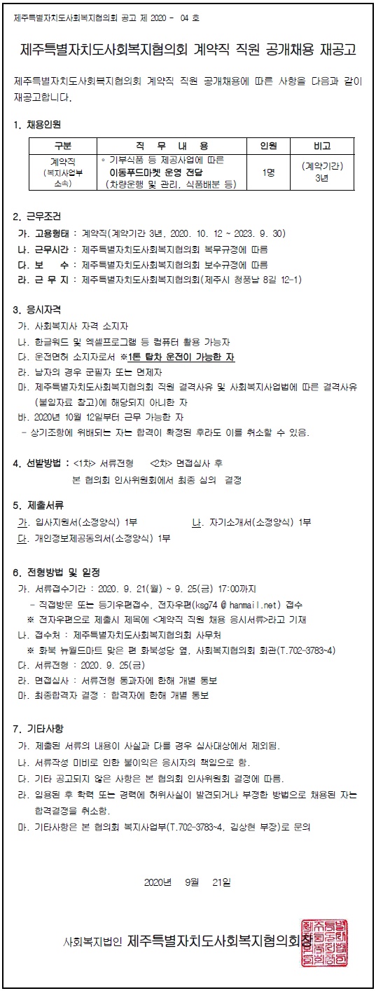 계약직 직원 채용 재공고