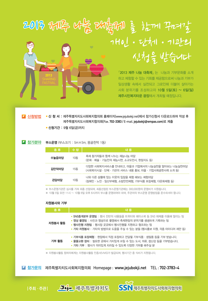 1.「2013 제주 나눔 대축제」부스운영 신청안내문 1부.