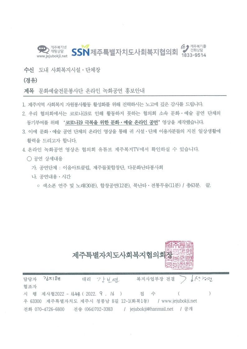 지역사회봉사단 문화·예술 공연단체 온라인 영상 안내