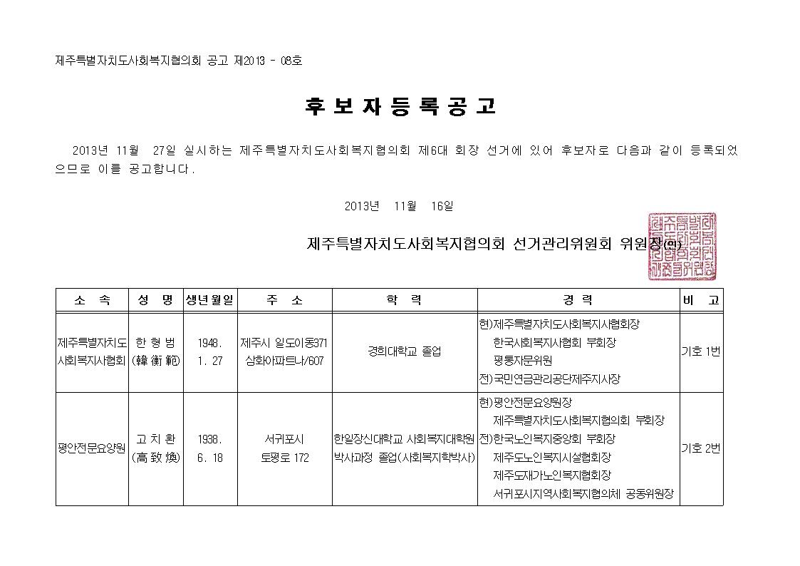 제6대 회장 선거 후보자 등록 공고