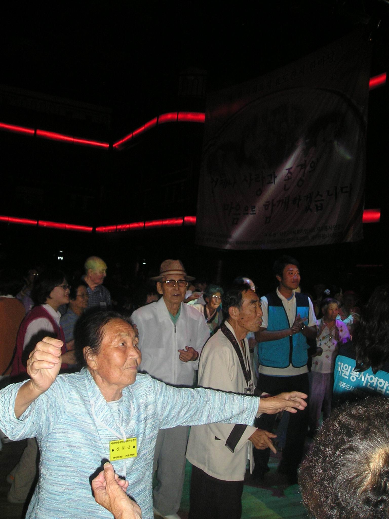 (아래)나이트 클럽의 화려한 불빛 속에서 흥겹게 춤을 추시는 할머니, 할아버지