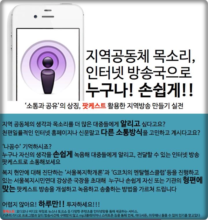 '소통과 공유의 상징, 팟캐스트를 활용한 지역방송 만들기' 교육 신청안내