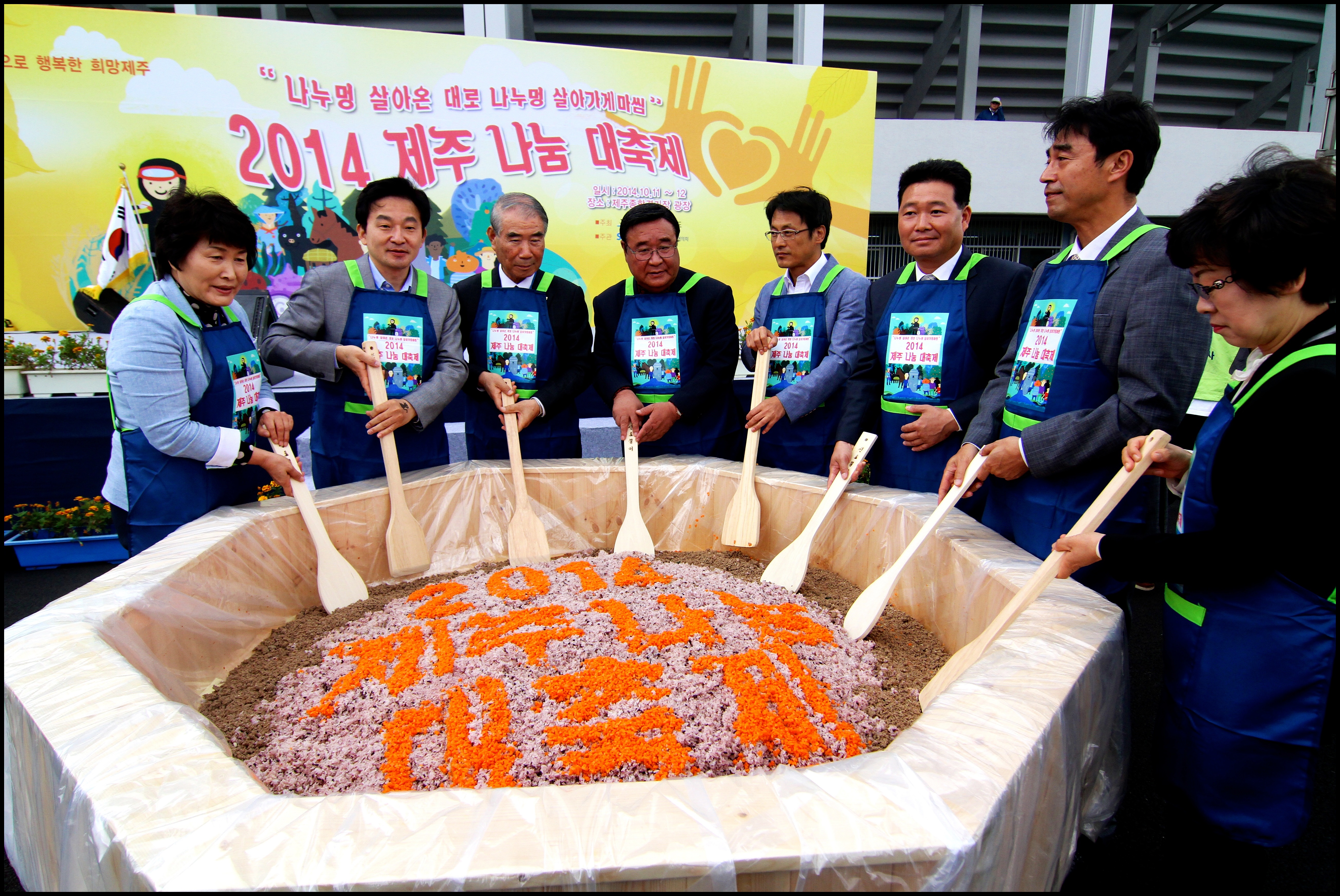 원희룡 도지사와 구성지 도의회 의장 등이 참석한 가운데 개최된 개막식에서는 나눔문화 활성화에 기여한 개인 및 단체, 기업체 등 유공자 10명에게 표창을 수여했으며, 한우협회와 KT&G가 나눔축제에 동참하고자 기부식품과 기부금을 전달했습니다. 제주여성장애인상담소'띠앗'합창단의 축하공연이 끝난 후 300인분의‘나눔 비빔밥 만들기’를 참가자들과 함께 진행했습니다.