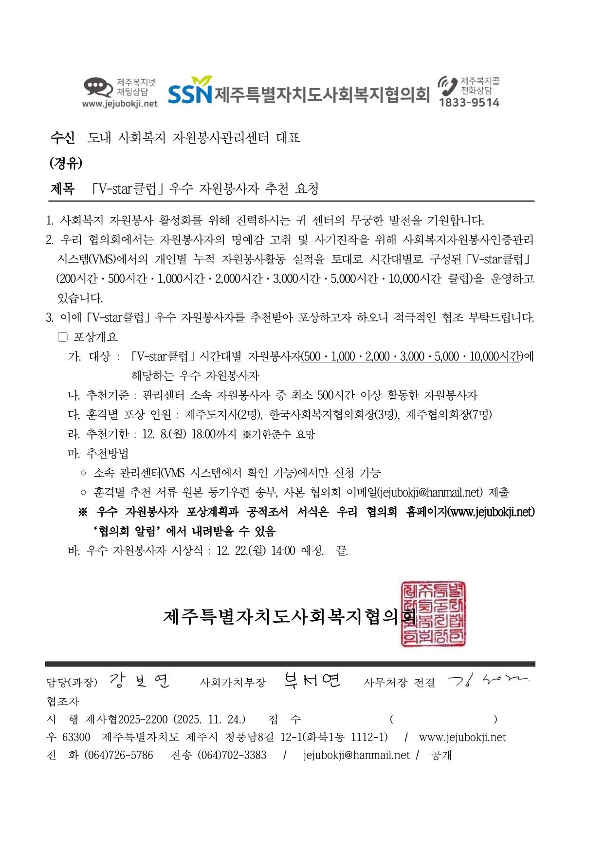 2025년 V-star클럽 우수 자원봉사자 추천 요청