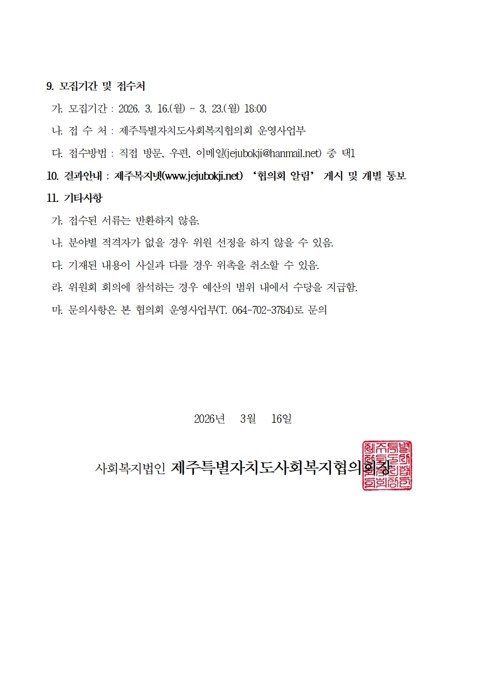 제주특별자치도사회복지협의회 교육위원회 위원 공개모집 공고