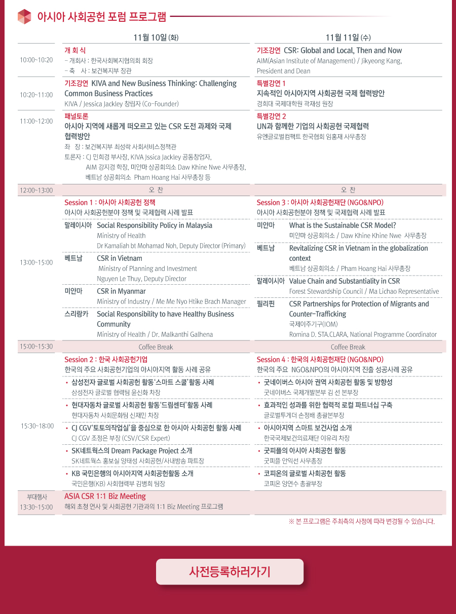 공헌 지원정책 및 사례 공유 등을 통해 지속가능한 아시아 사회공헌활동의 협력 방안을 모색하기 위해