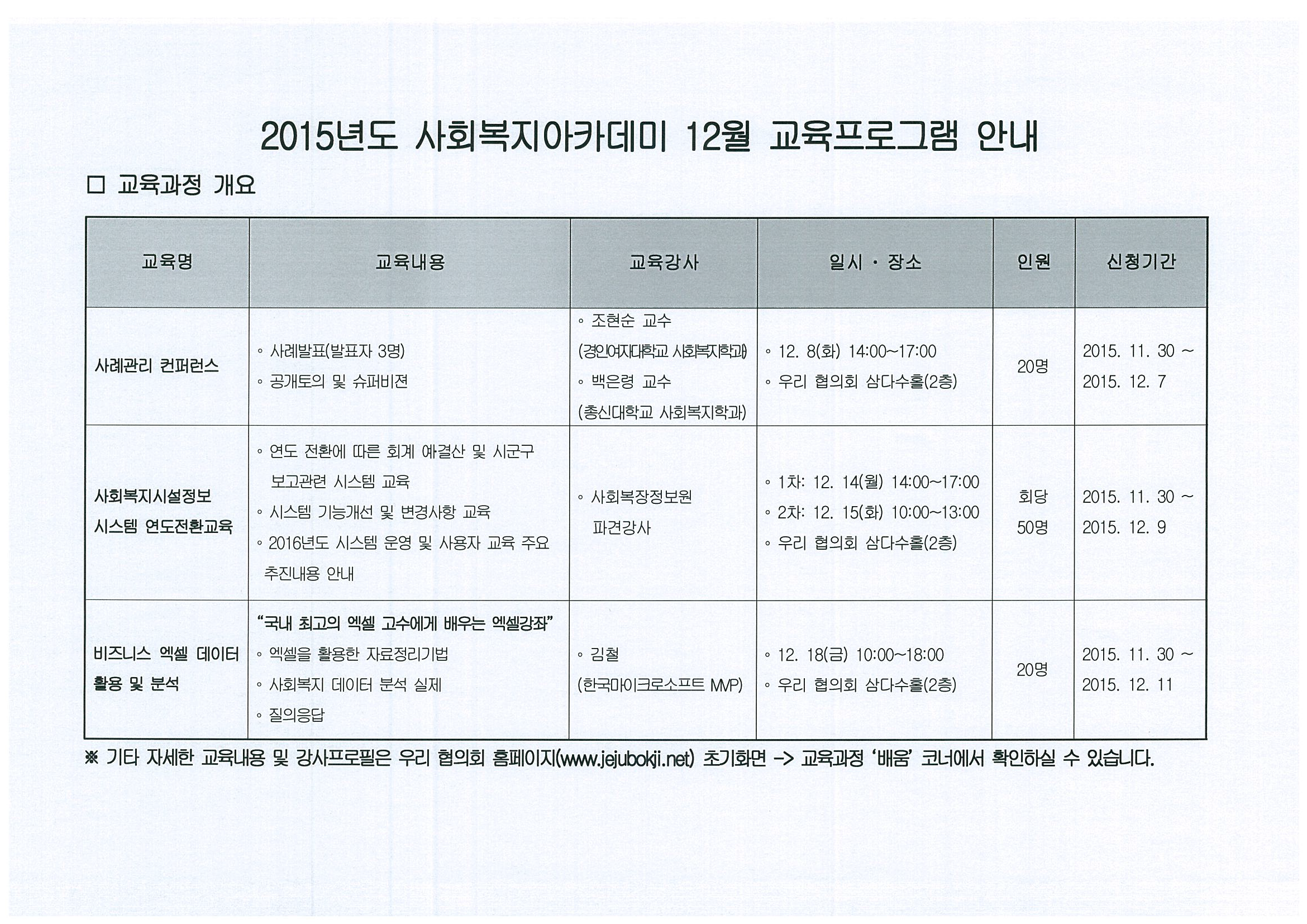 사회복지아카데미 12월 교육프로그램 안내