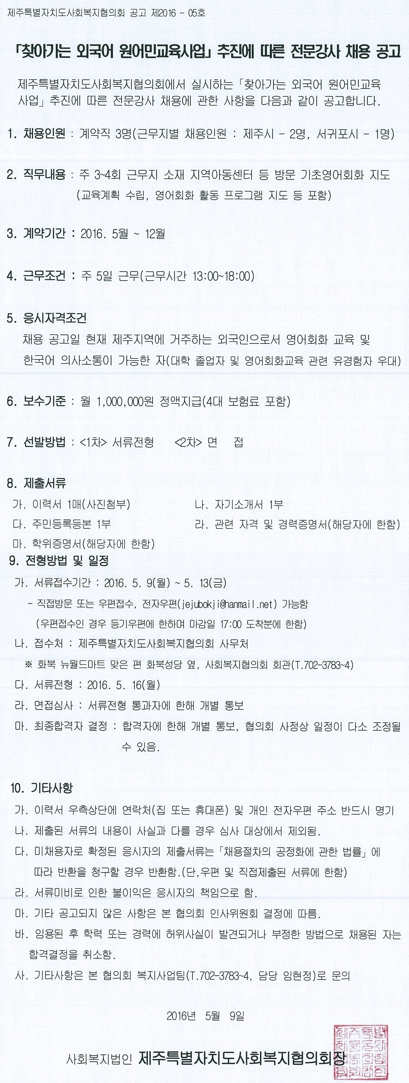 '찾아가는 외국어 원어민 교육사업'전문강사 채용 공고