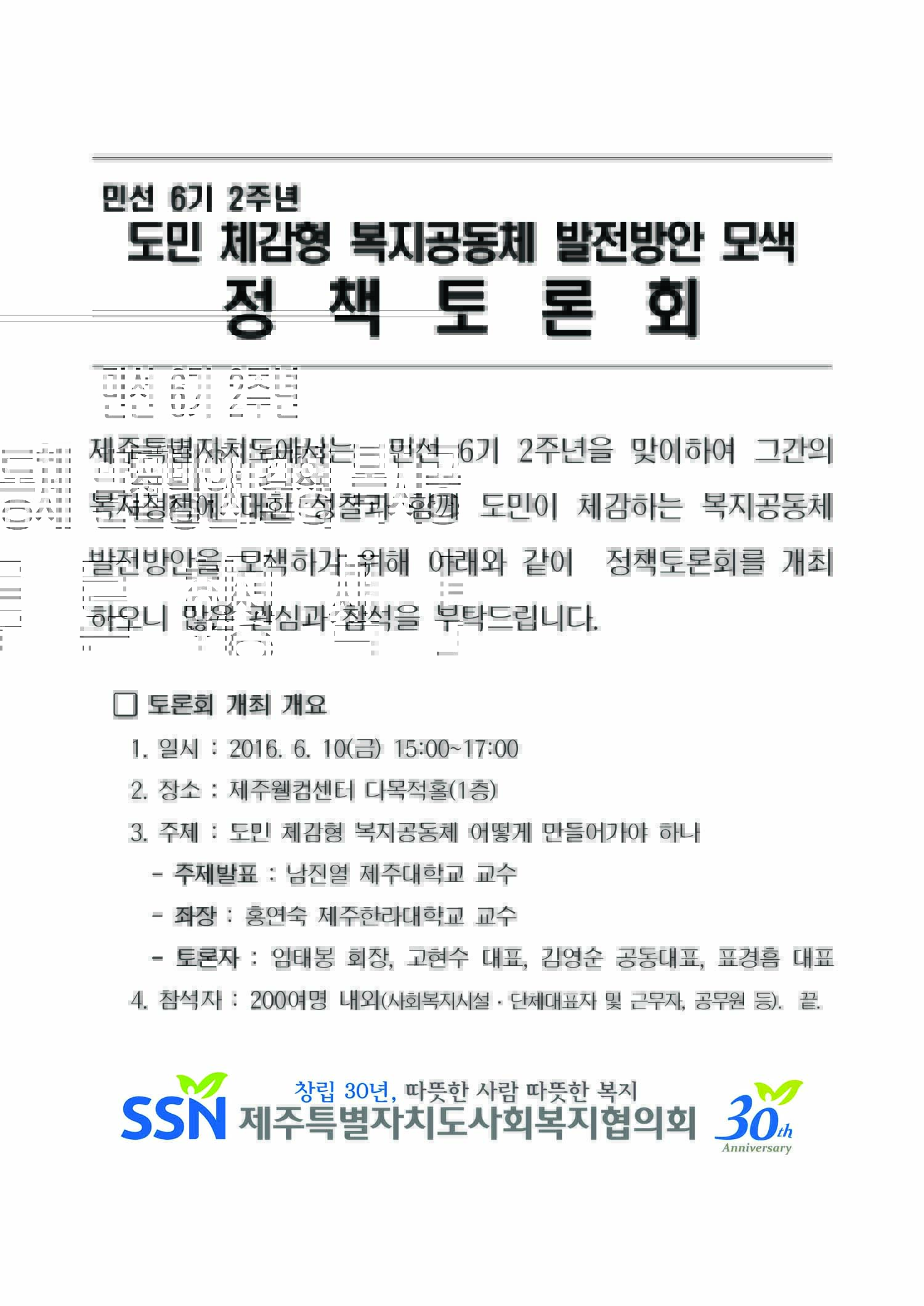 도민 체감형 복지공동체 발전방안 모색 정책토론회 안내